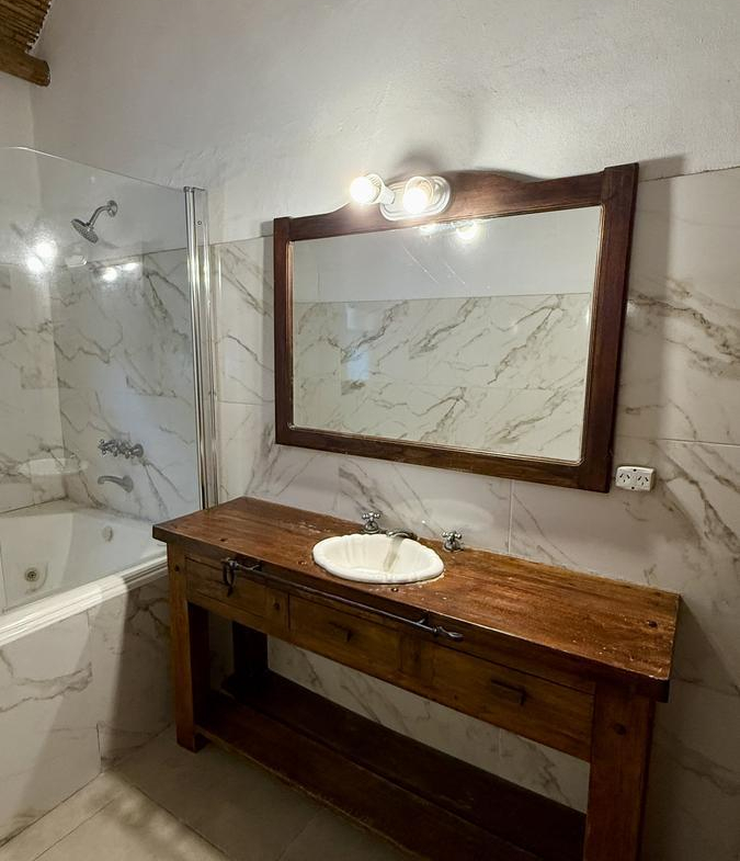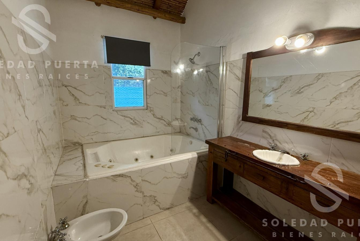 Un pasillo de generosas dimensiones conduce al sector privado, donde se encuentran dos dormitorios con cómodos placares completos, asistidos por un baño completo, y una amplia suite principal con chimenea a gas y baño con hidromasaje.