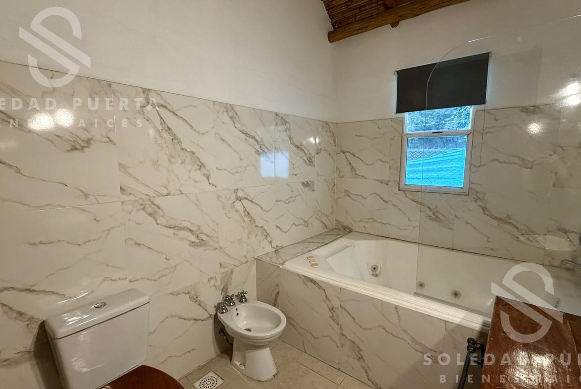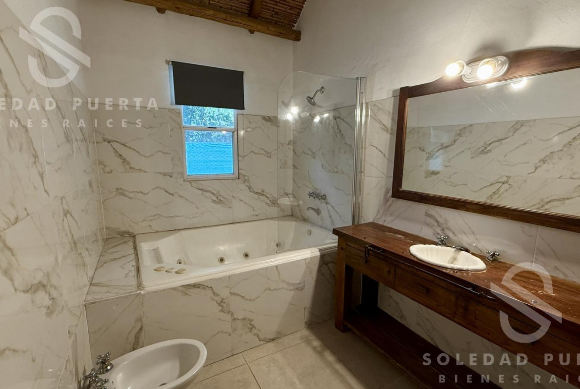 En el exterior se desarrolla una hermosa galería en L, parrilla, horno de barro y cuarto de herramientas al fondo del lote.