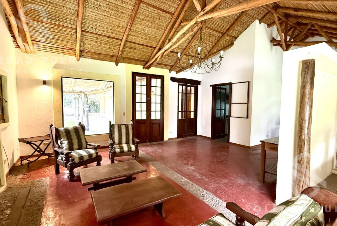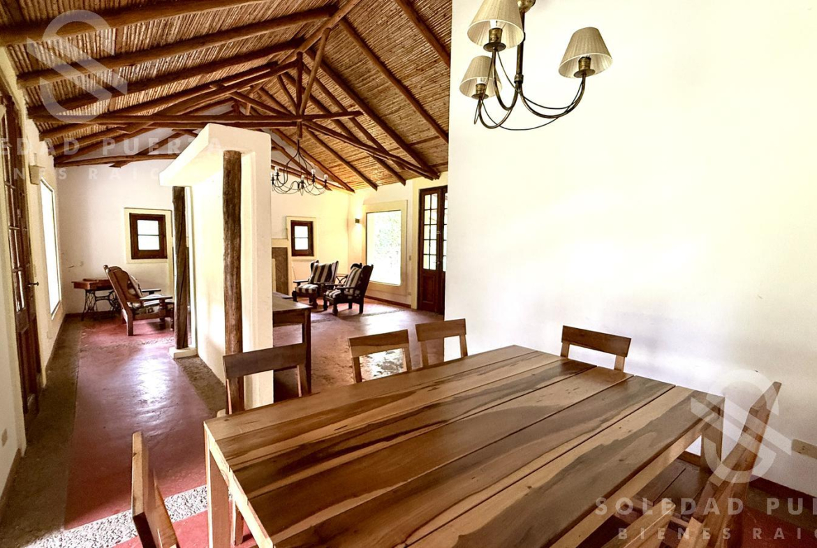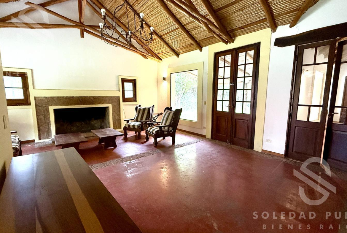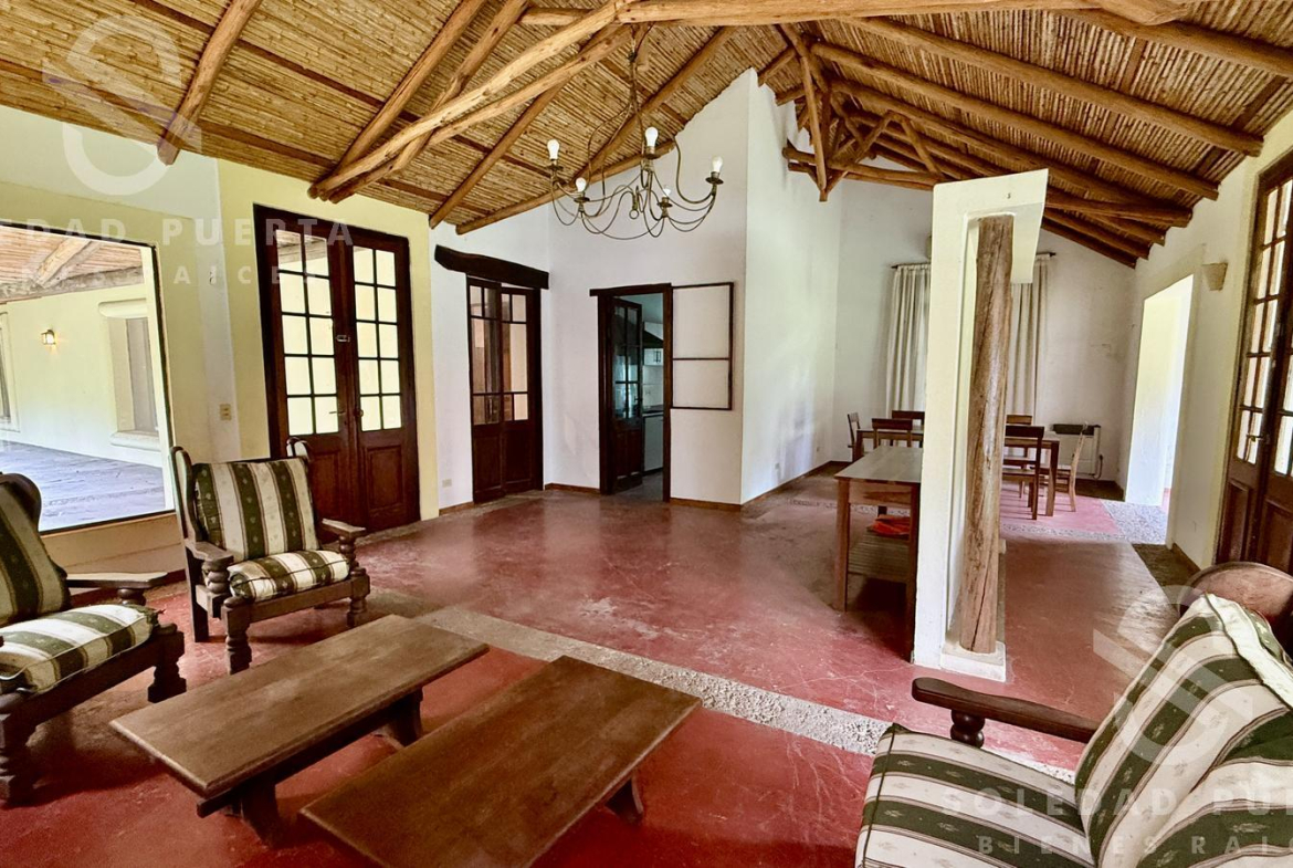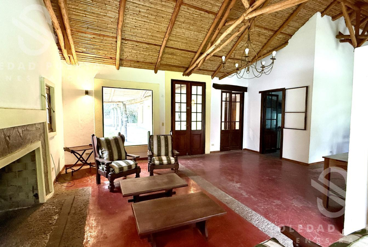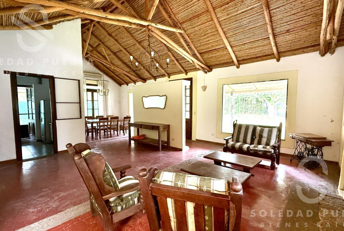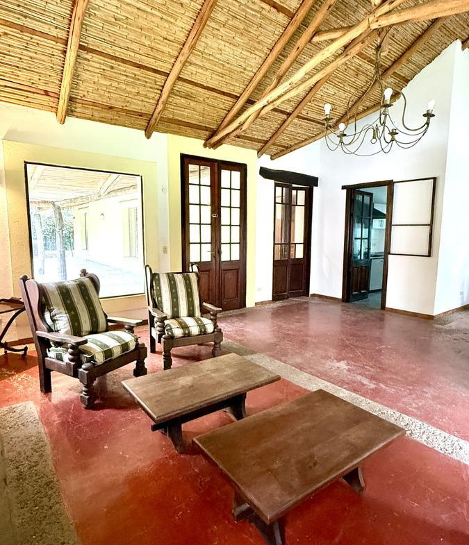 Casa estilo campo, desarrollada en una planta sobre un amplio lote de aproximadamente 935 m², ubicada en una zona de gran crecimiento.