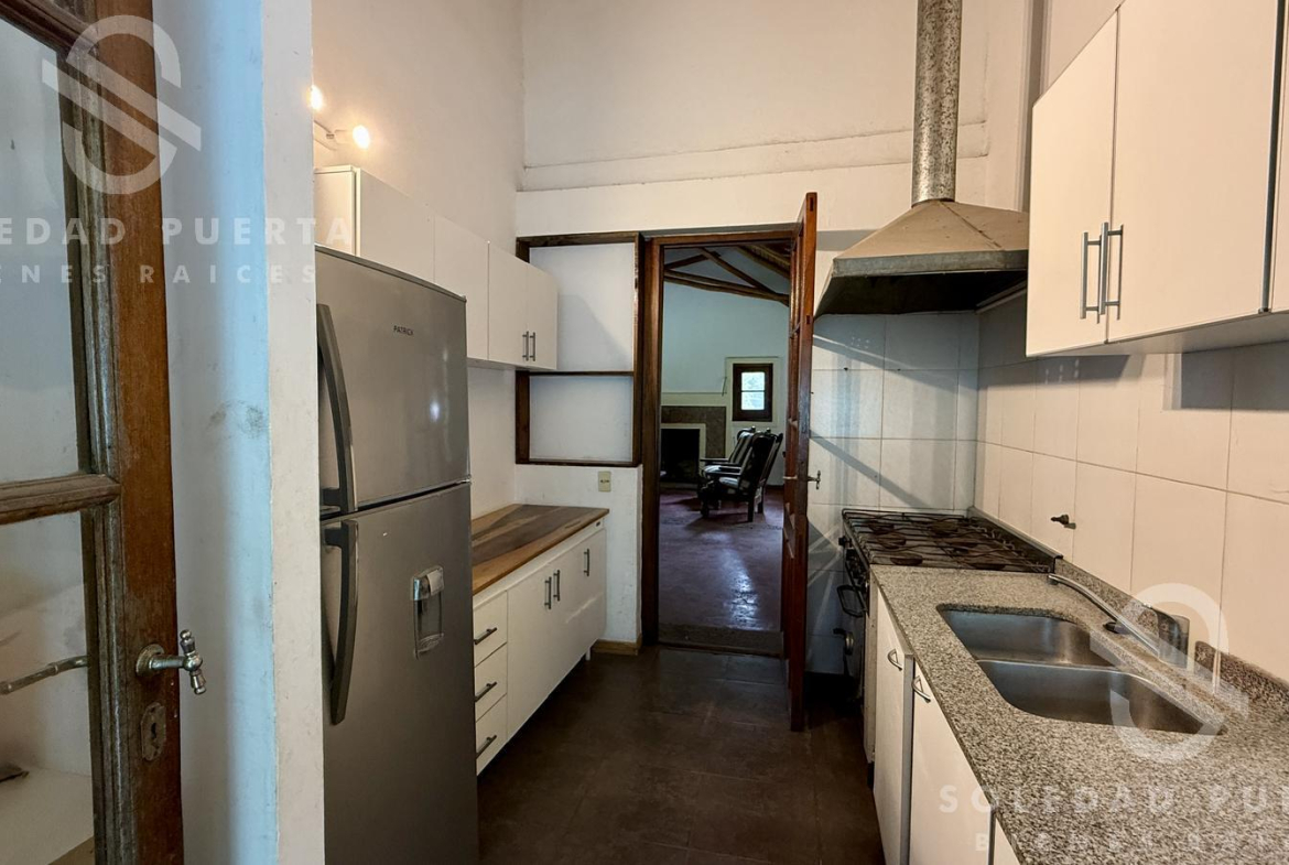Al ingresar, cuenta con hall de recepción, escritorio abierto al frente, comedor diario y amplio living con hogar. La cocina es independiente y posee espacio de lavadero.