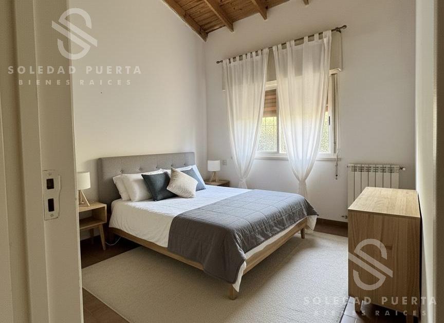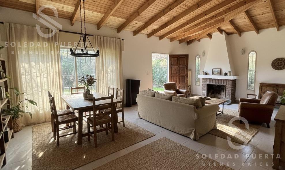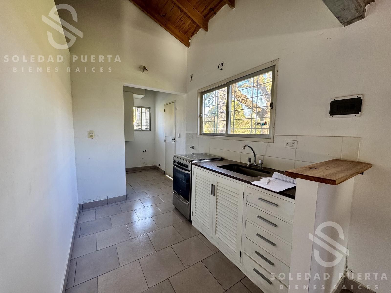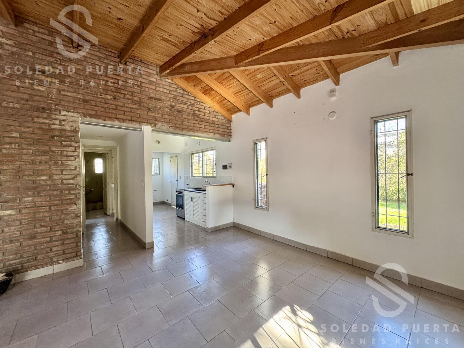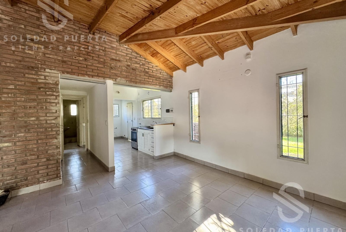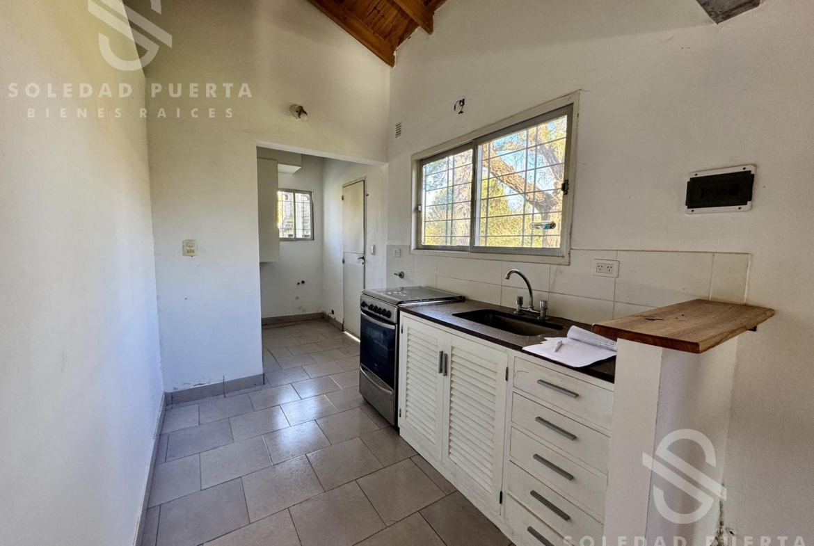 Este acogedor chalet de una planta ofrece un living luminoso con hogar a leña, ideal para compartir charlas y mates en invierno. Su distribución práctica conecta la cocina y lavadero con comodidad, mientras que sus dos dormitorios y baño completo brindan el espacio justo.