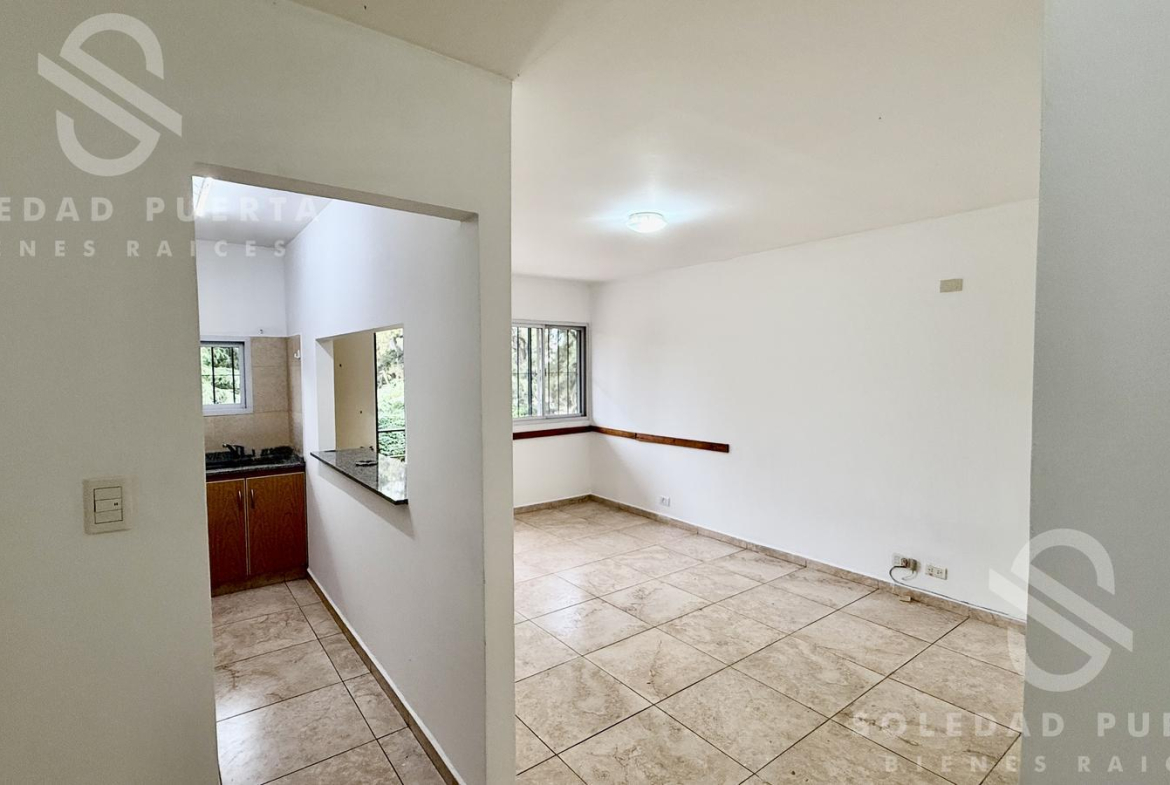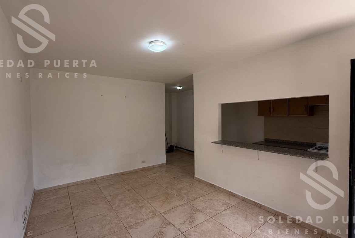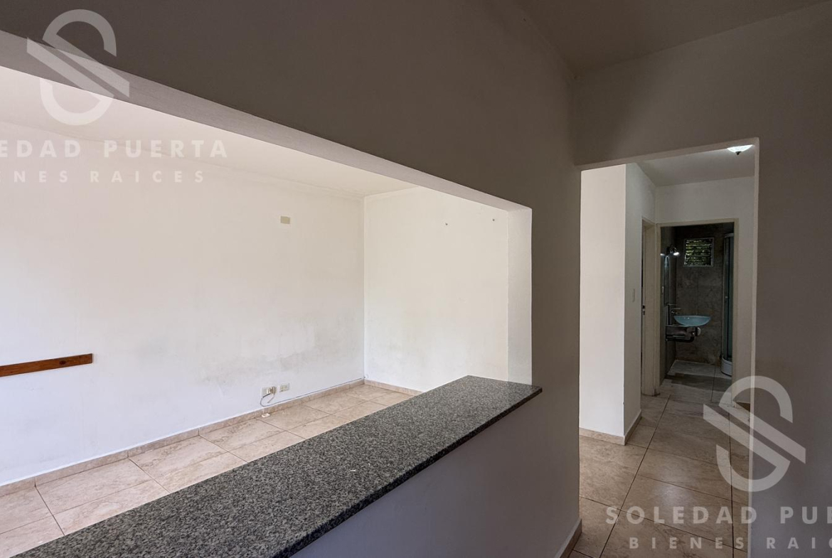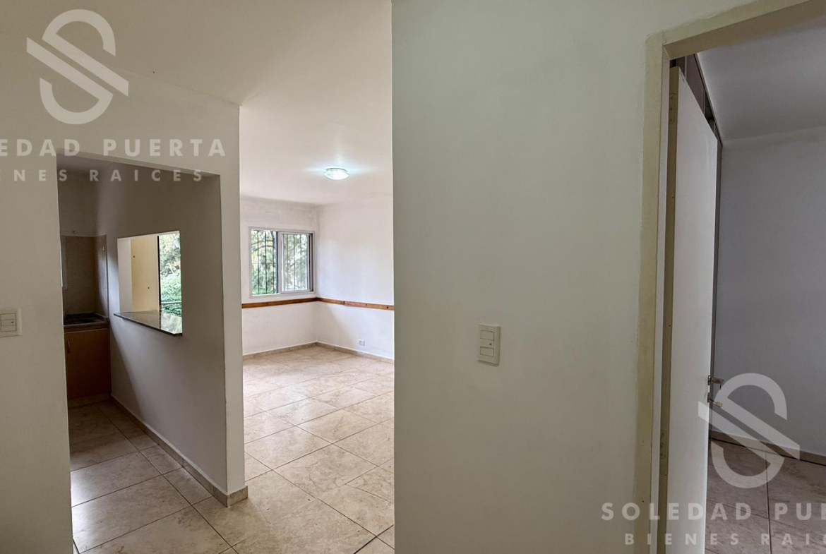 Al ingresar encontramos el living comedor con buena luz natural y una cómoda cocina, con barra pasaplatos. El departamento cuenta con un amplio pasillo de distribución que permite generar un espacio de trabajo o sumar lugar de guardado.