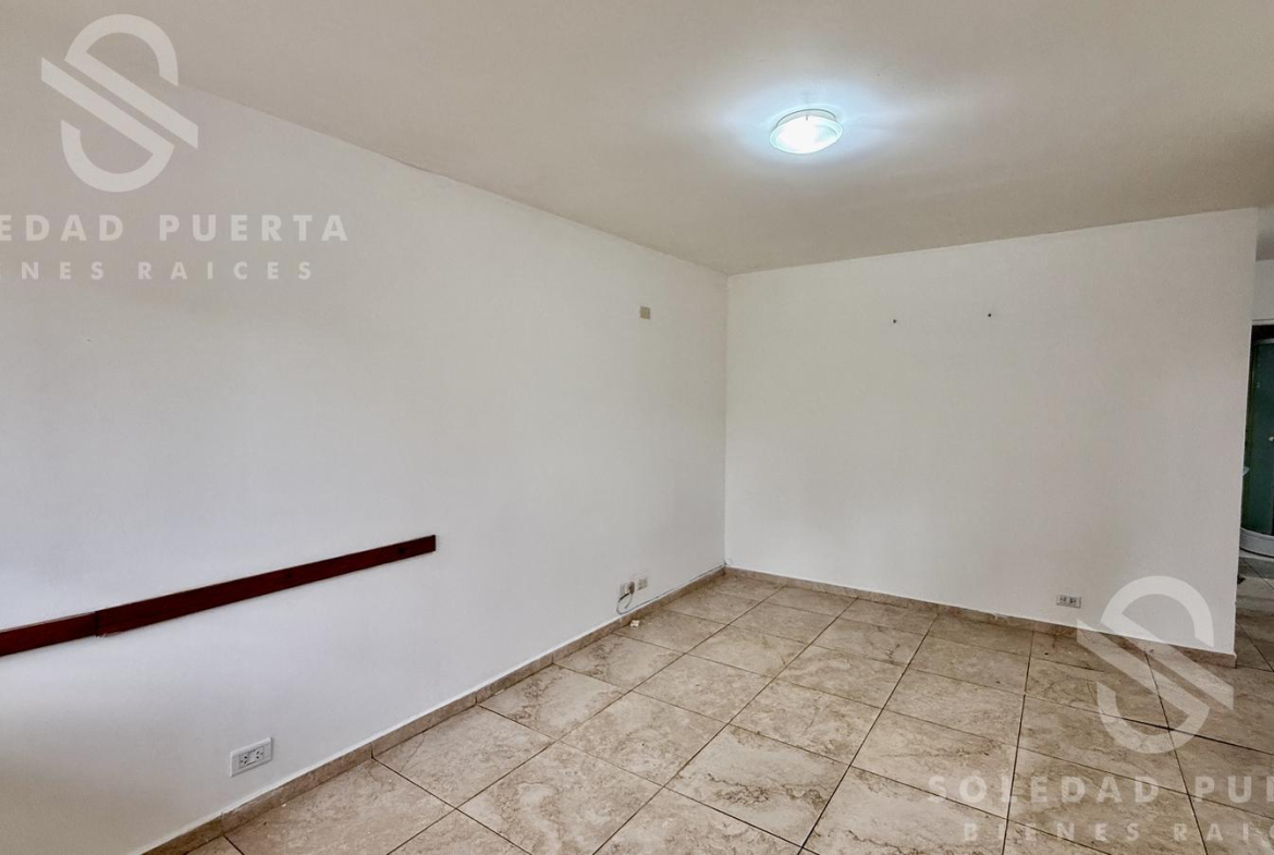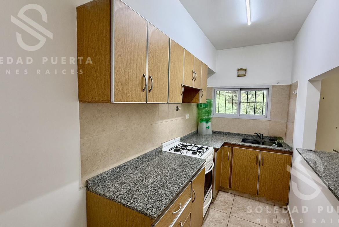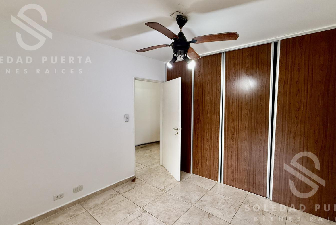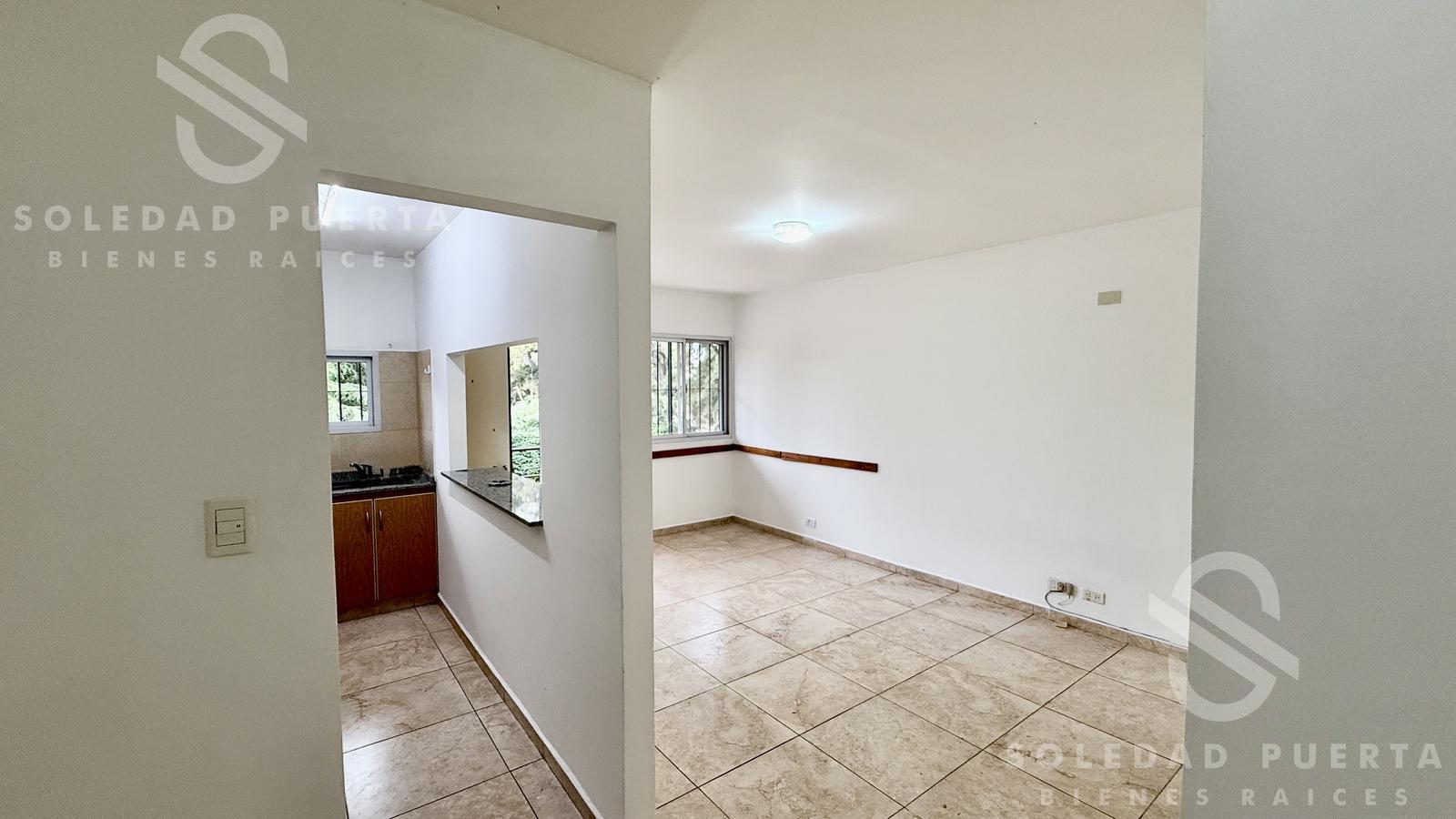 Al ingresar encontramos el living comedor con buena luz natural y una cómoda cocina, con barra pasaplatos. El departamento cuenta con un amplio pasillo de distribución que permite generar un espacio de trabajo o sumar lugar de guardado.