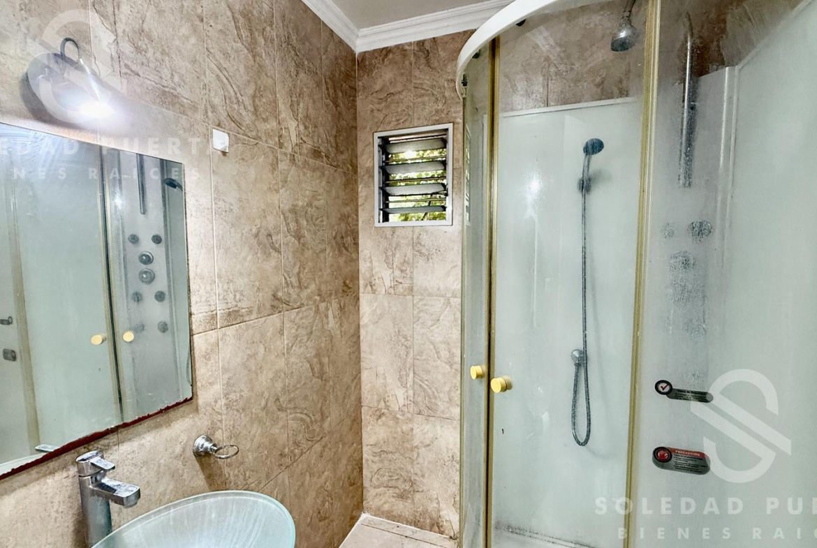 La habitación posee placard completo de piso a techo y el baño es con ventilación natural. Además, un lindo balcón.