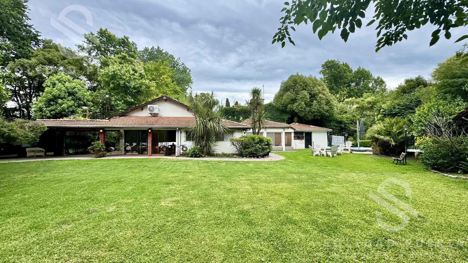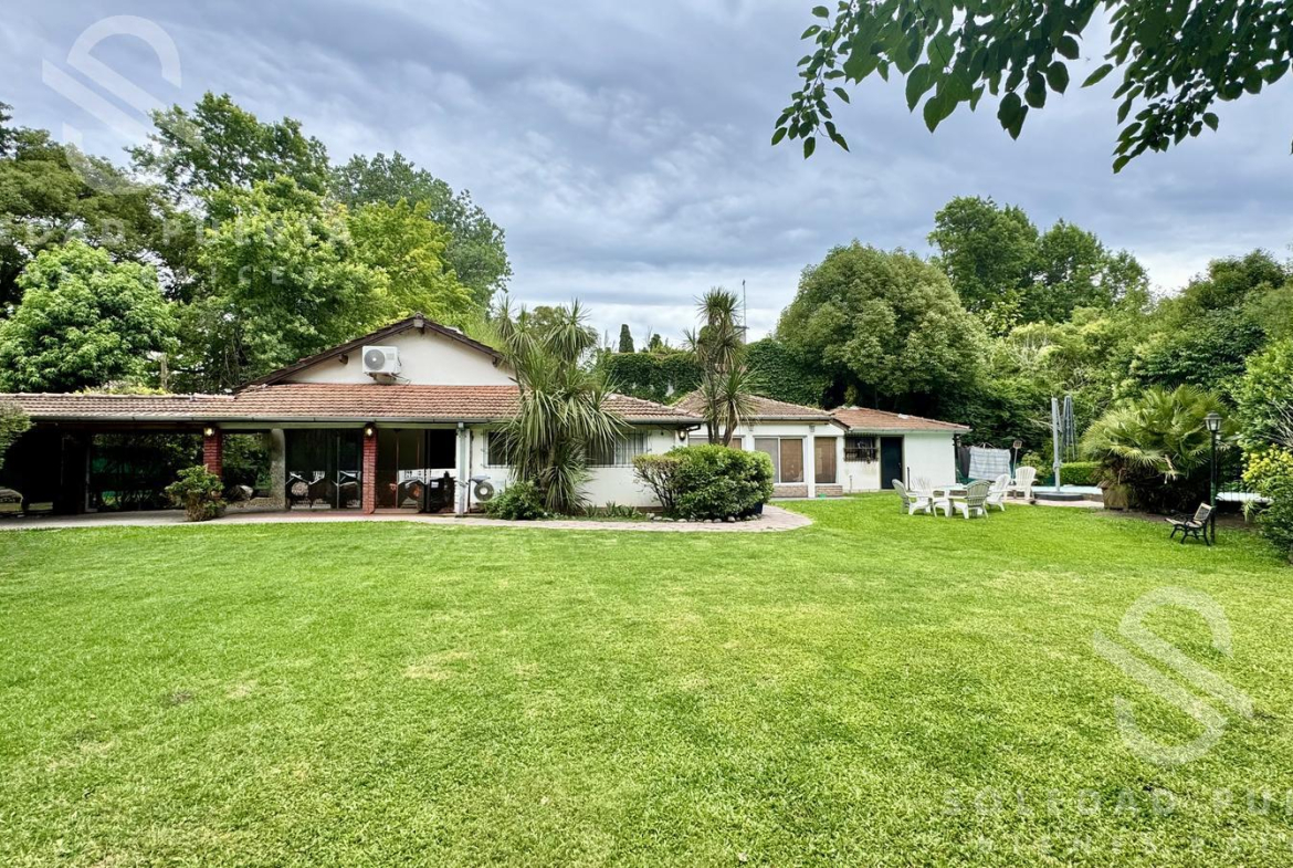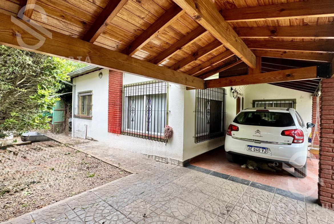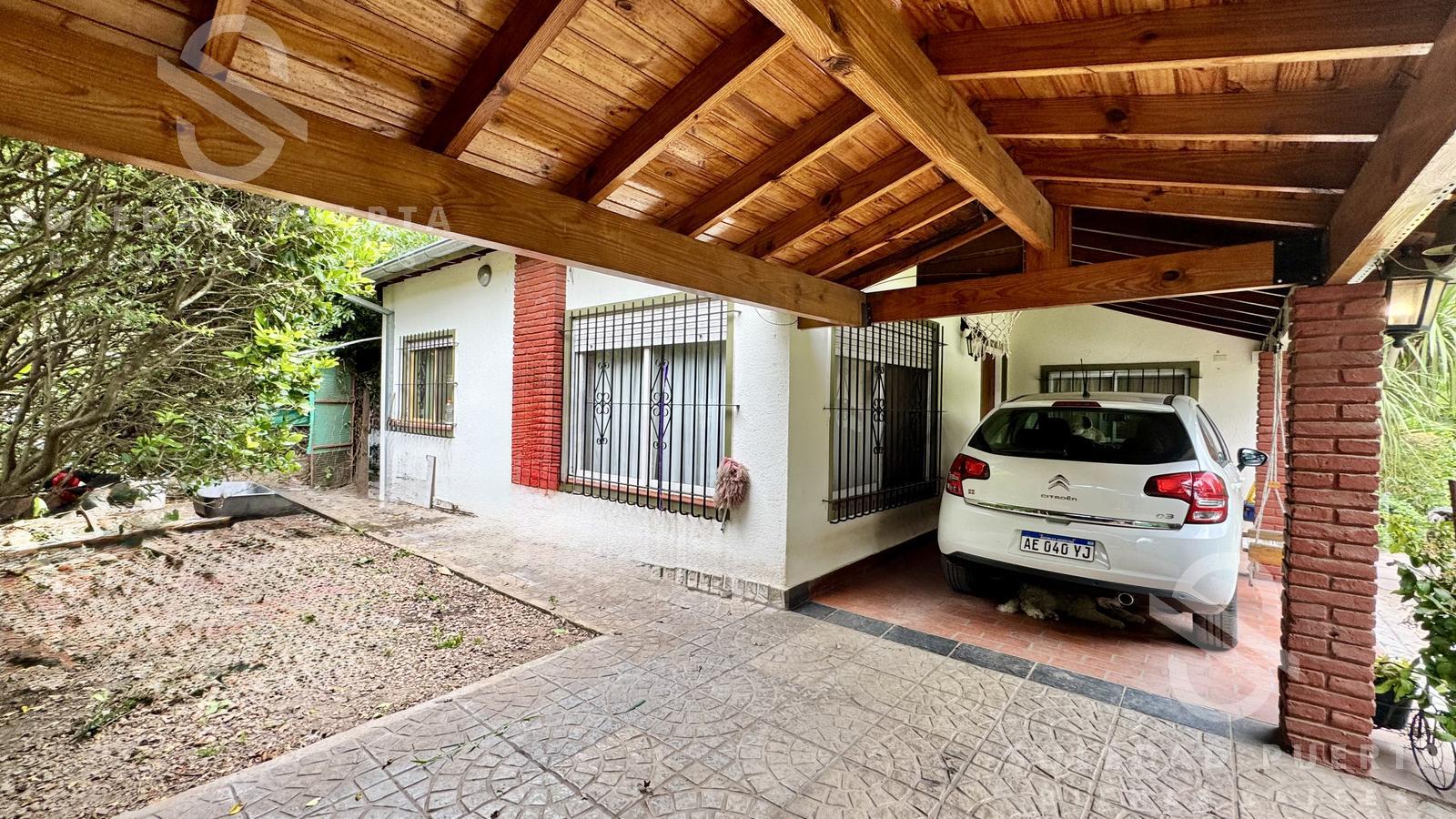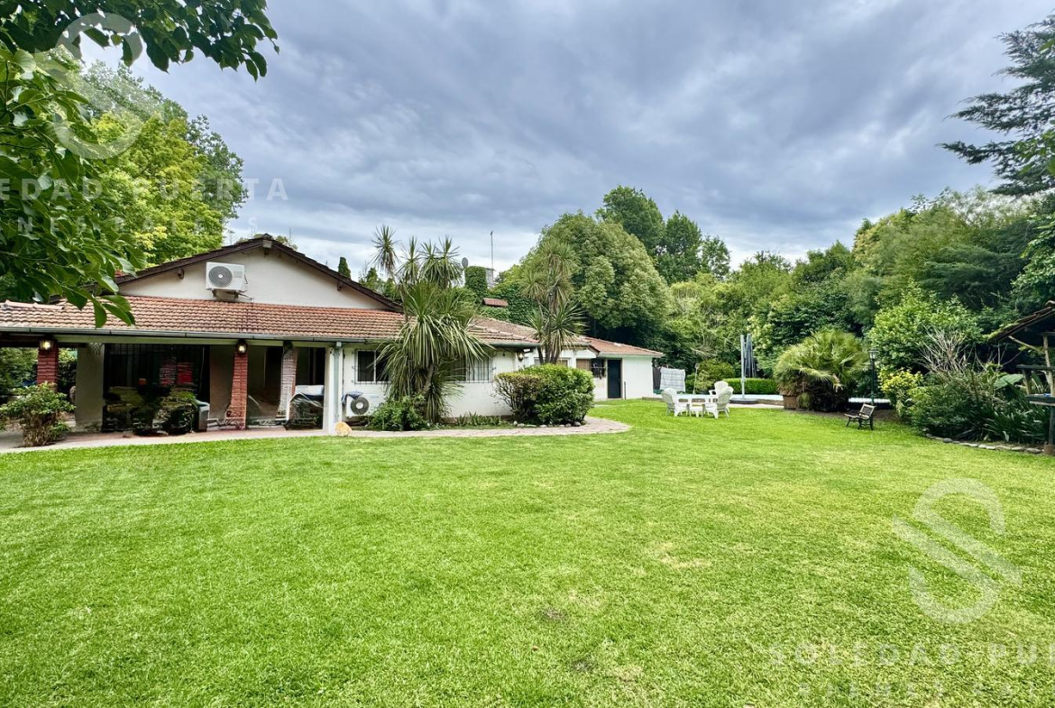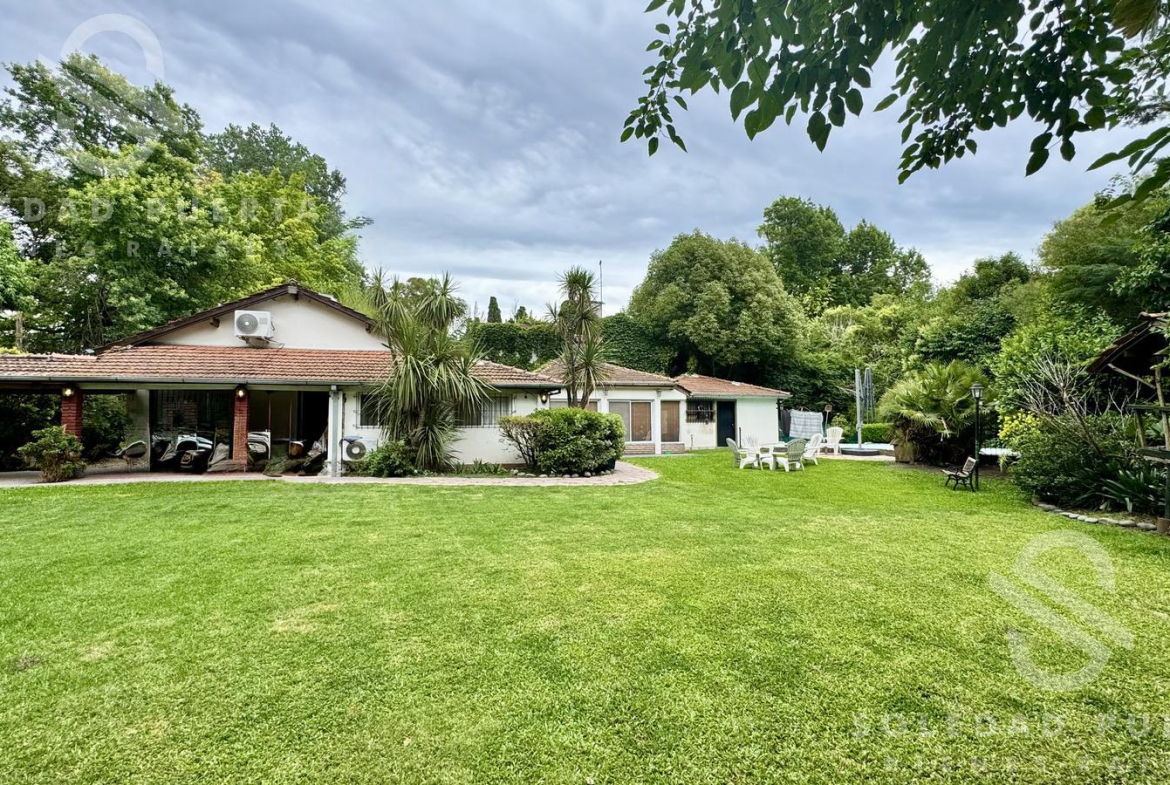 Gran jardín con piscina, lavadero, galpón y cochera techada.
