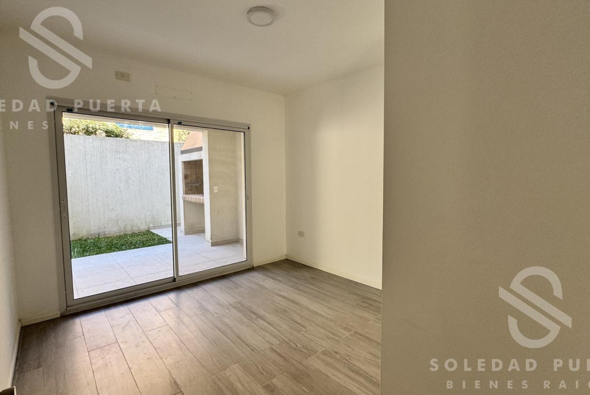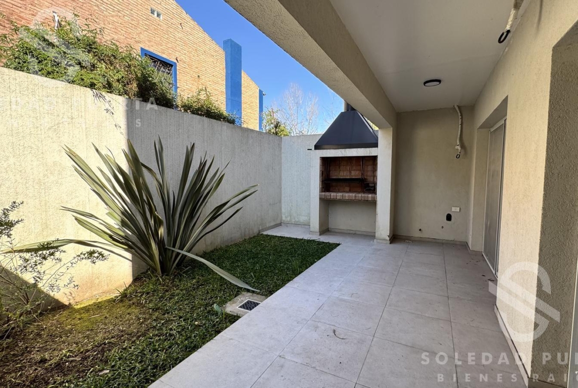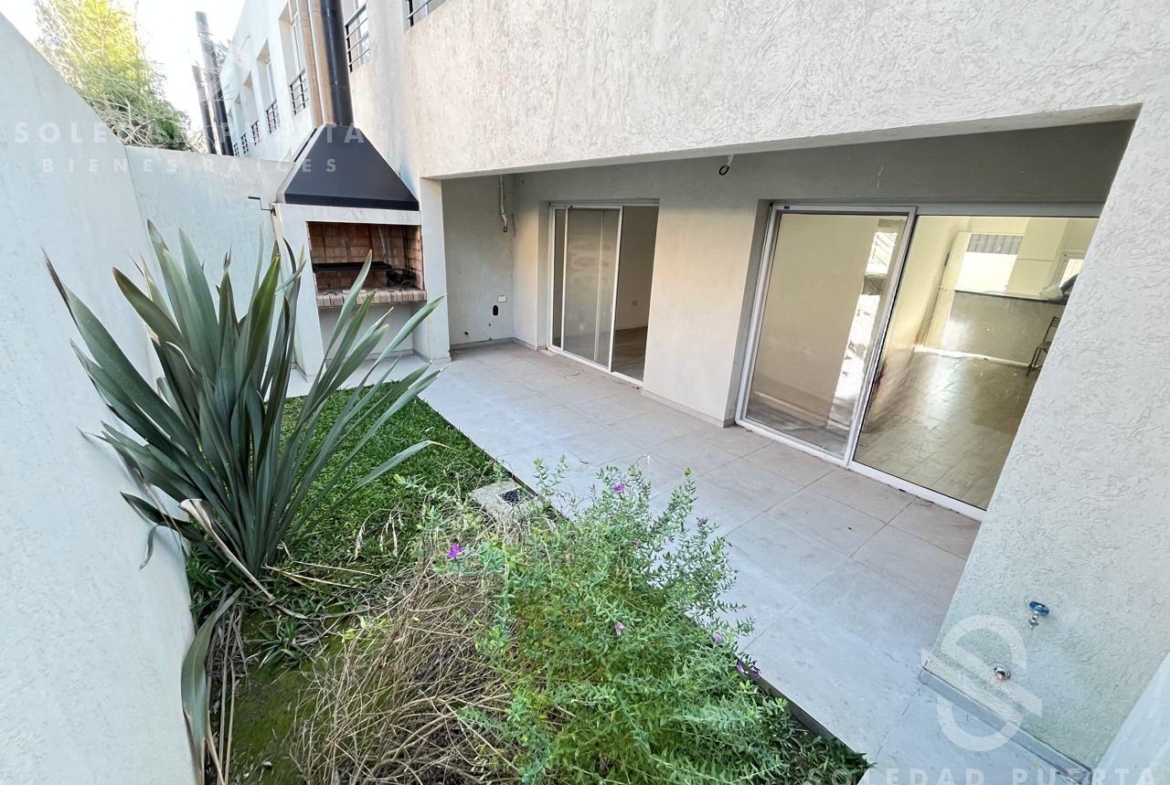 Cuenta con 2 dormitorios con placares empotrados, 1 baño completo, y un diferencial que marca la diferencia: jardín propio con galería y parrilla, un privilegio poco común en la zona.