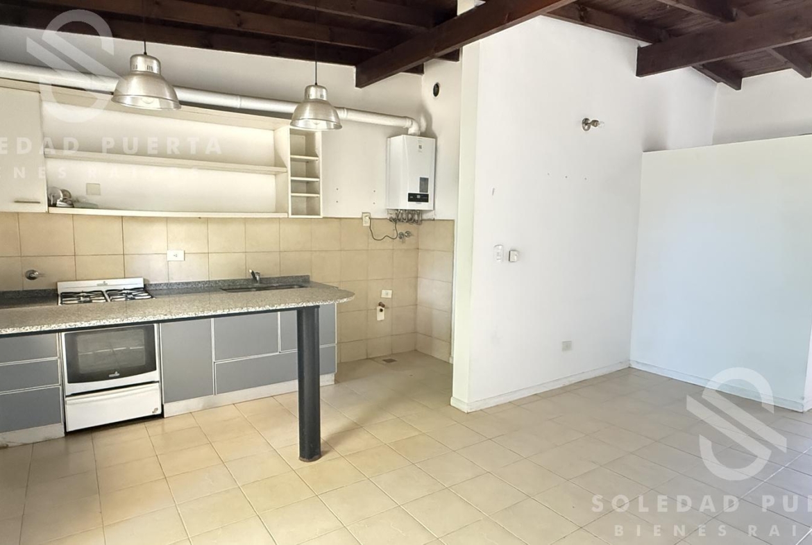Cocina-Comedor integrado por barra. Aire acondicionado y conexión para lavarropas.